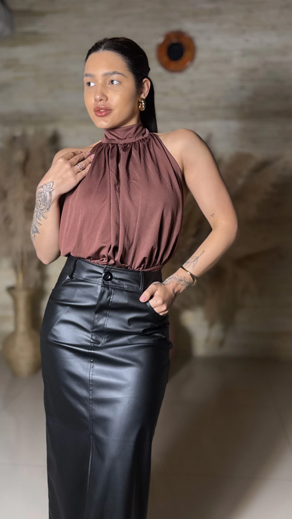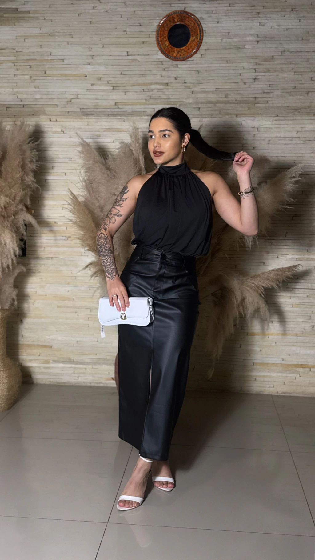 Detalhes: modelo gola, tecido em poliamida, caimento elegante e leve. Possui abertura nas costas.