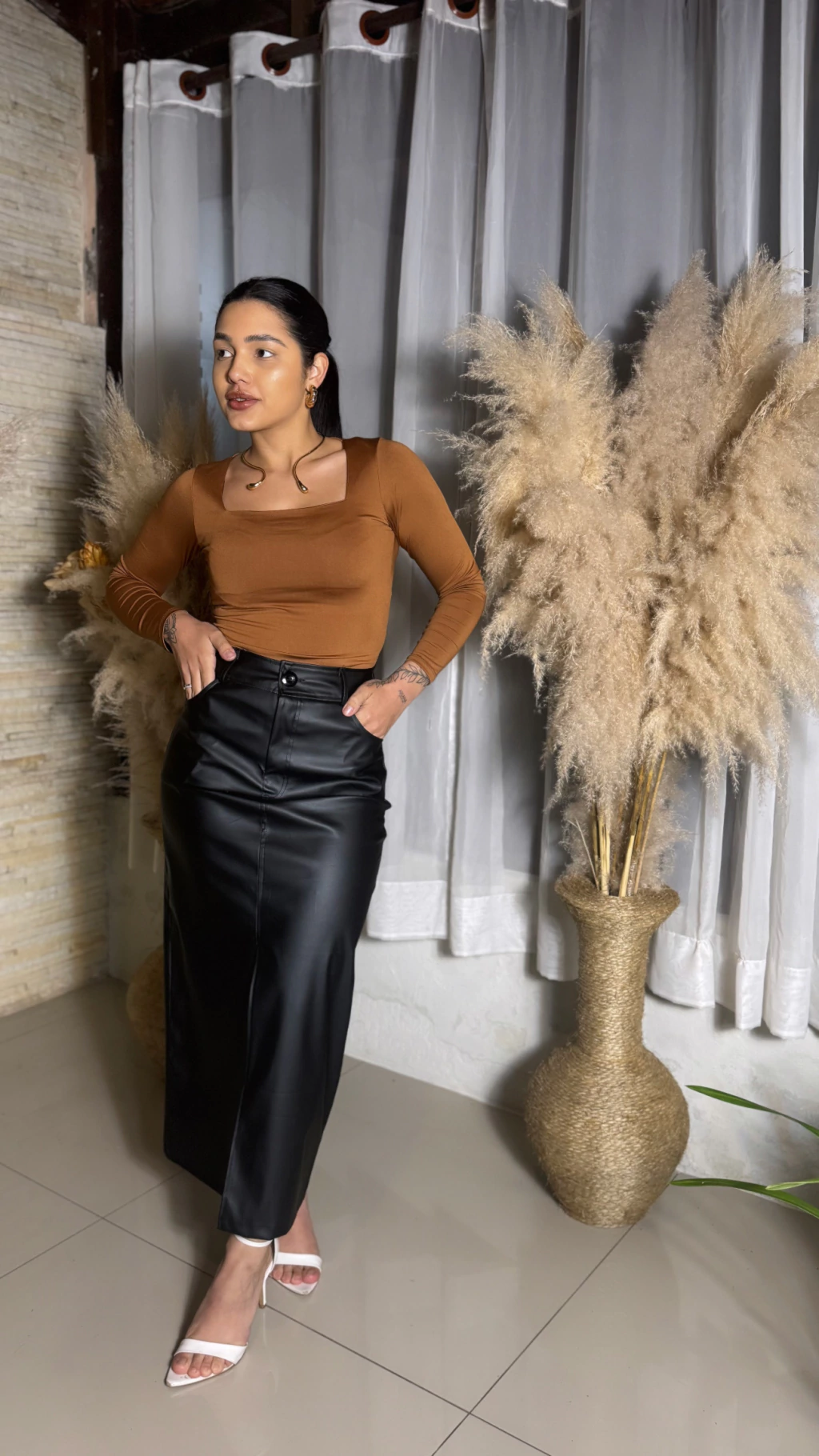 Detalhes: modelo com decote quadrado, tecido em poliamida.
