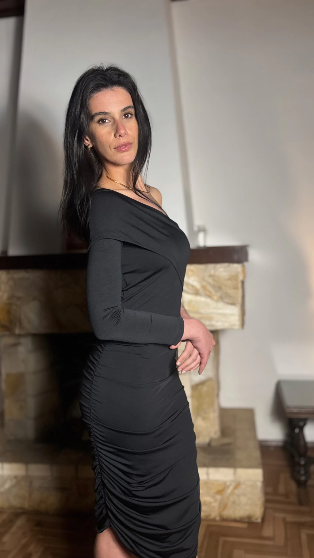 Detalhes: modelagem ajustada, tecido em poliamida, decote assimétrico, caimento elegante.
